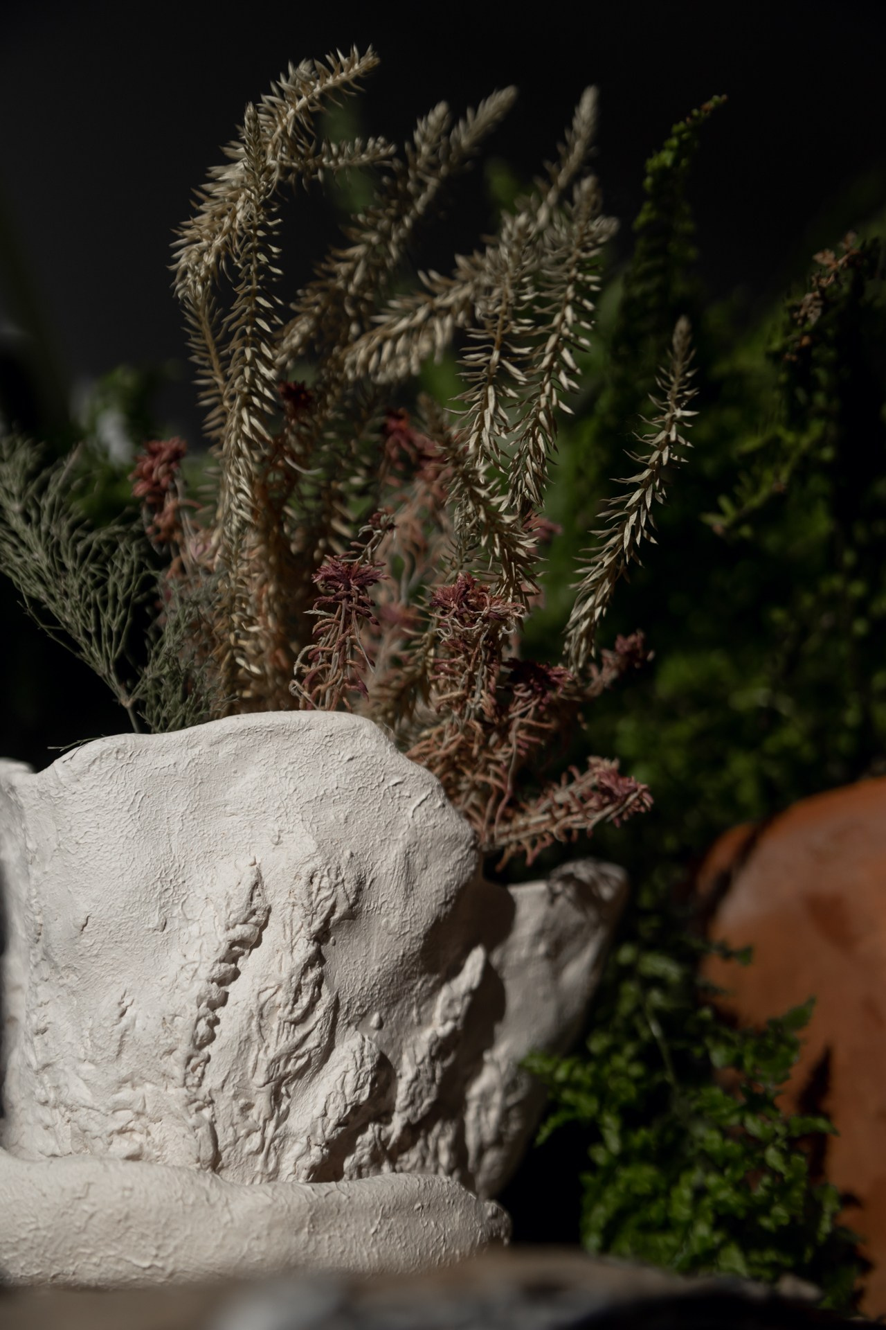 С рельефом разных мхов и лишайников.